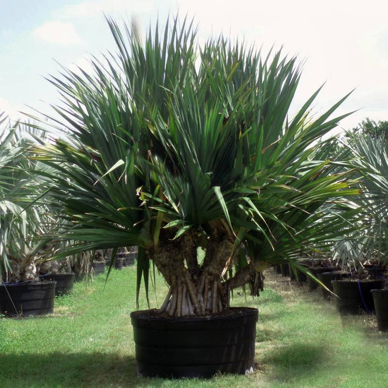 Този вид има леко съкратен багажник. Въздушните корени му придават стабилност. Короната се състои от дълги (около 1 м) и тесни (5-8 см) листа, разположени в спирала. Листната пластинка е оградена с бял оттенък и границата е гъсто облицована със светли бодли.
