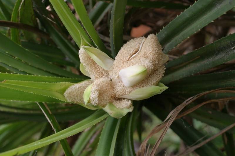 У дома, закрито цвете панданус, подобно на цъфнало цвете, почти никога не се среща. За това има малко информация. Понякога рампа, която се покрива, радва с цъфтеж. Цветя с диаметър 0,5-1 см, бели или розови.