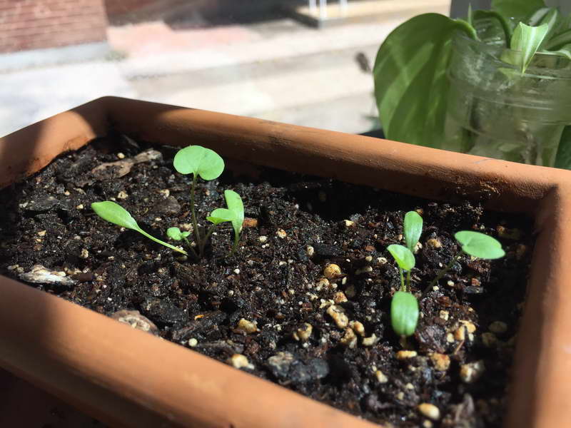 Семената се разпределят равномерно по повърхността, след което се навлажняват с пулверизатор и се покриват с полиетилен. Най-доброто място за покълване е светла и топла стая.