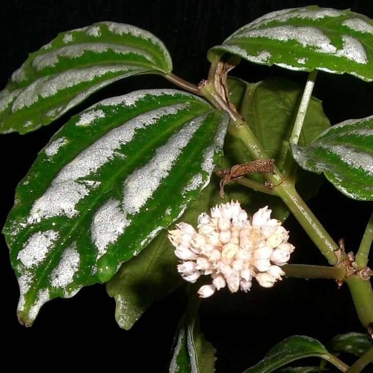 Цветовете са малки, незабележими, бледорозови или бледожълти, по форма наподобяват звезди, които се образуват в пазвите на листните плочи. Цветята се събират в метличести съцветия. На фона на големи ярки листа те едва ли се забелязват.