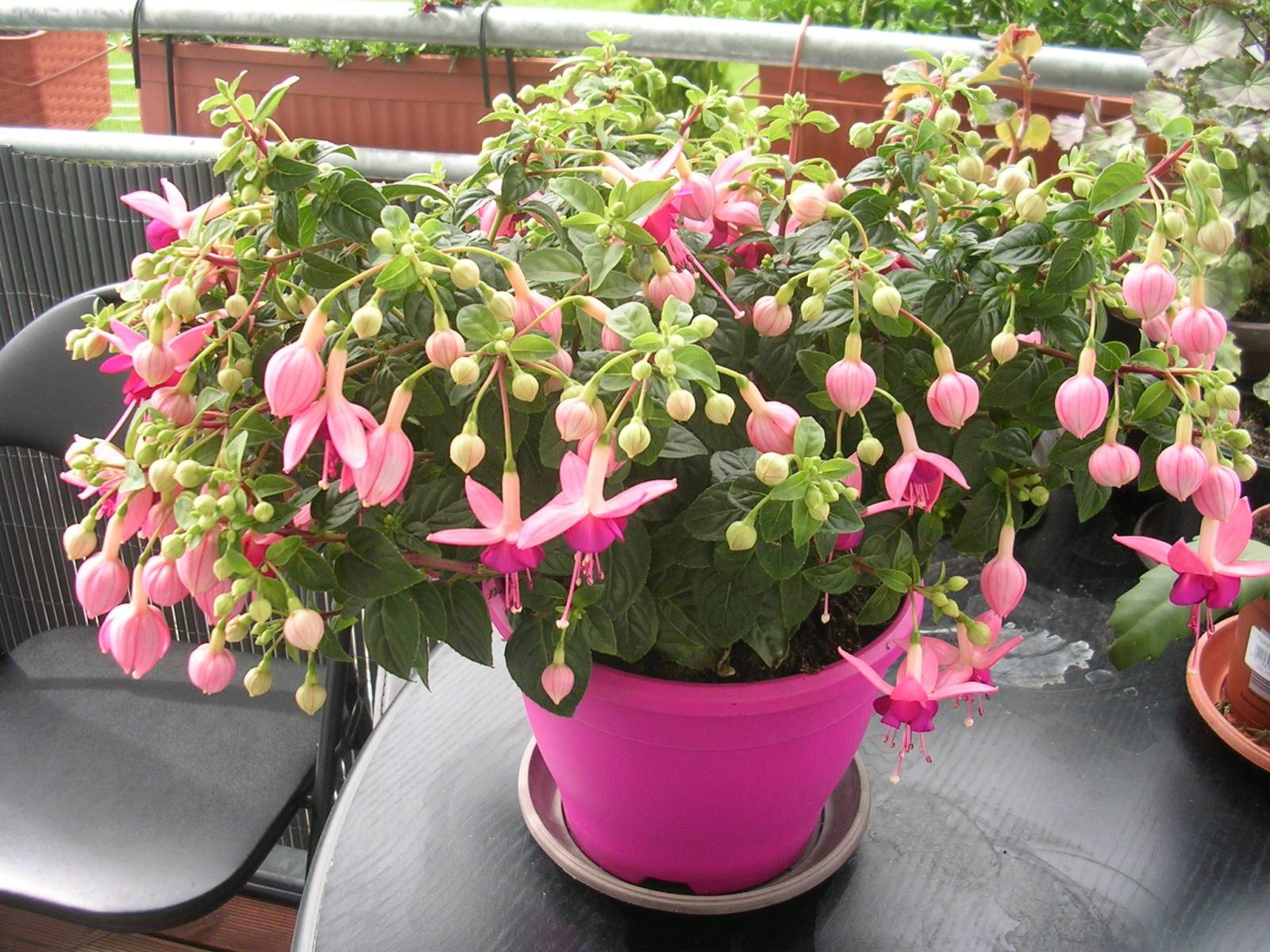 Fuchsia активно развива кореновата система. Саксията трябва да е просторна.