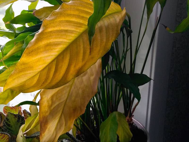 Ако листата на растение, стоящо под климатик или на отворен прозорец, пожълтяват, тогава е достатъчно да смените местоживеенето си.