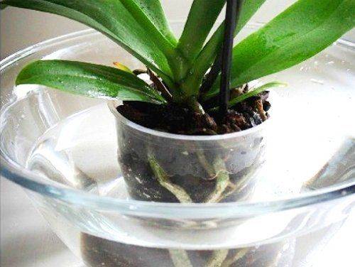 Пресъхналата почва практически не абсорбира вода, тя става леко влажна на повърхността, изтичайки се по стените на саксията в тигана.Пресушена земна бучка ще се навлажни добре с поливане чрез потапяне в съд с вода. Но отслабено от суша и липса на хранителни вещества, растението няма да се справи с толкова много влага наведнъж, във влажна почва корените ще започнат да гният и цветето ще умре.