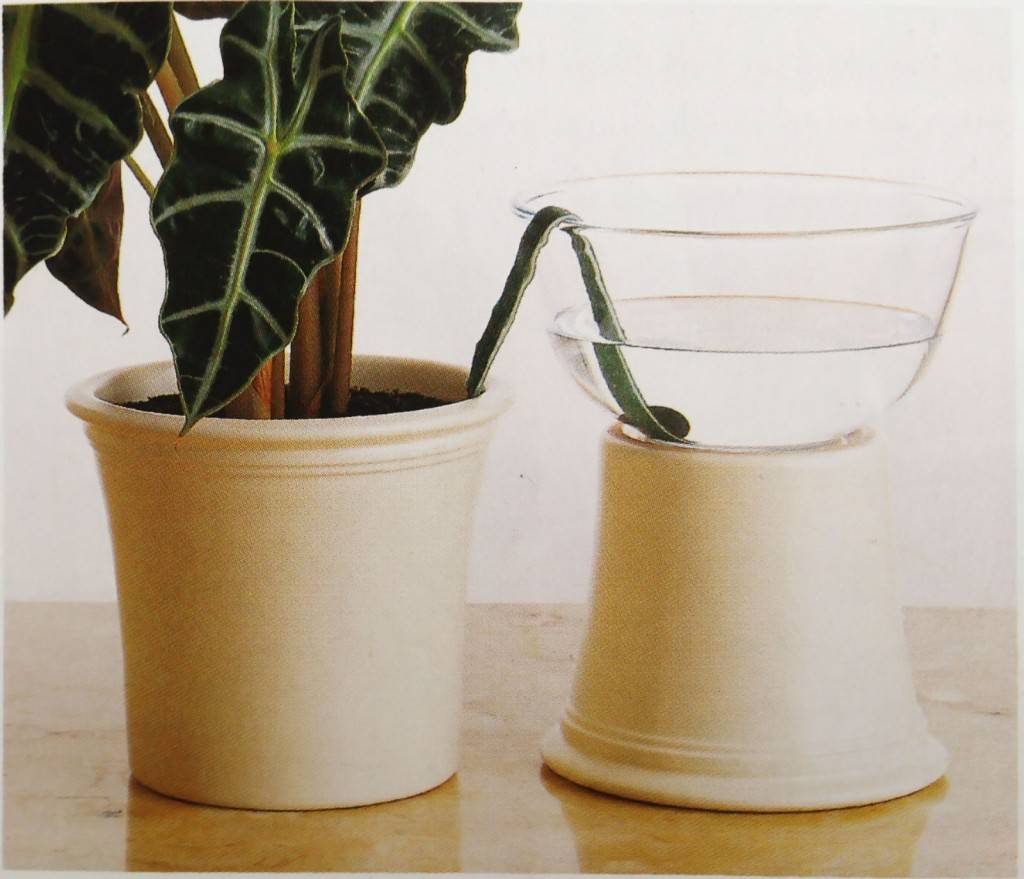 Това устройство може да поддържа умерена влажност на почвата от няколко седмици до няколко месеца.Контейнерът е оборудван с двойно дъно. На дъното има резервоар, в който се излива вода. На дъното има дупки, през които водата попада в земята.