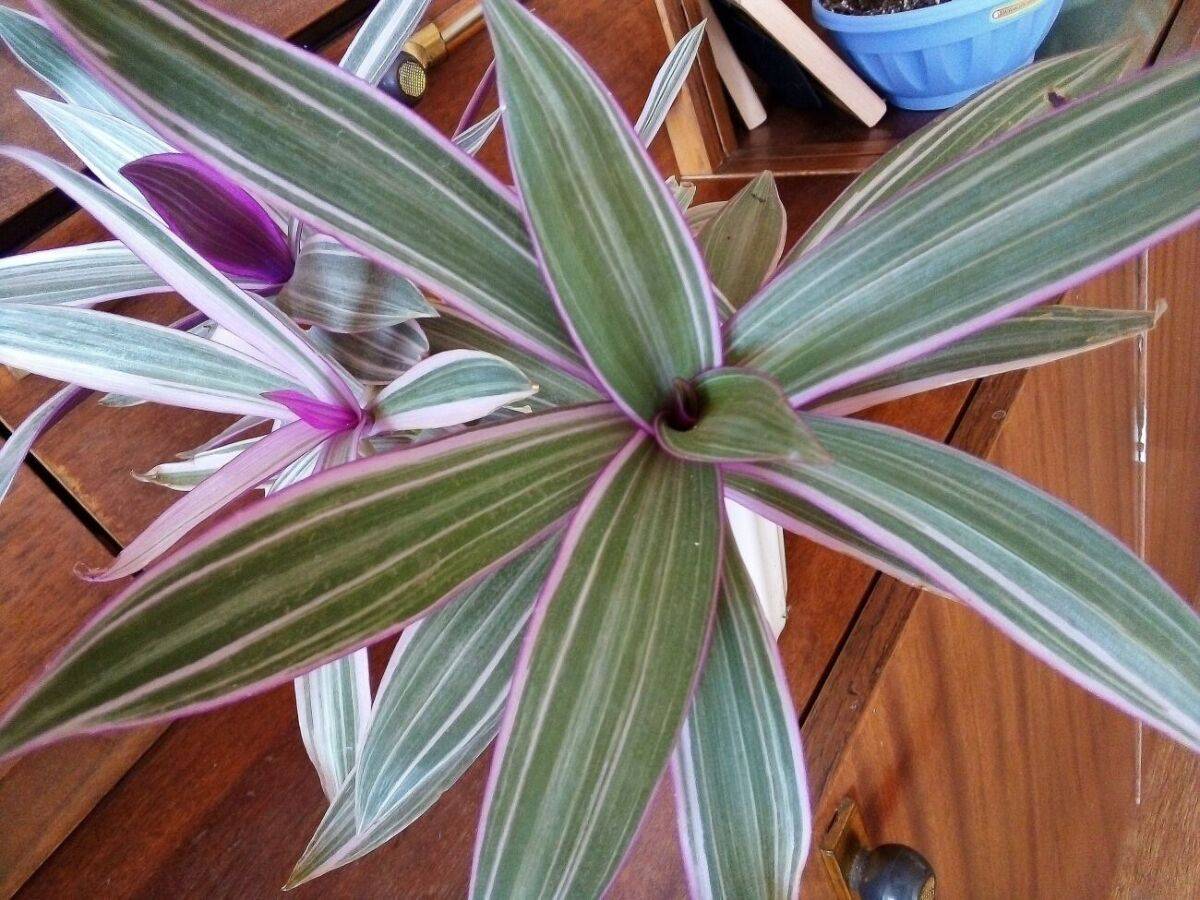 - Spathacea Vittata. Горната част на листните плочи е бледо зелена, долната е розова;