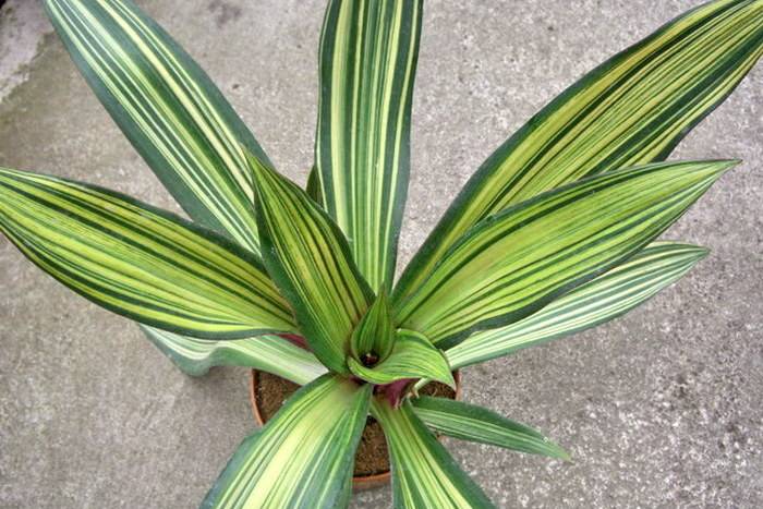 - Ивица в розово. Листата на това растение са покрити със зелено-бяло-розови ивици;