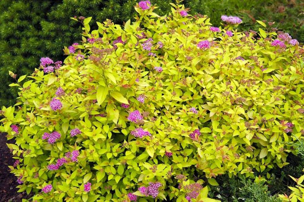 - Алпинеуми и алпинеуми - за тях са подходящи сортове спирея с гъста корона. Храстът изглежда много впечатляващо на фона на иглолистни дървета, както и в компанията на сродни сортове с контрастен цвят на листата, например Spirea Magic Carpet.