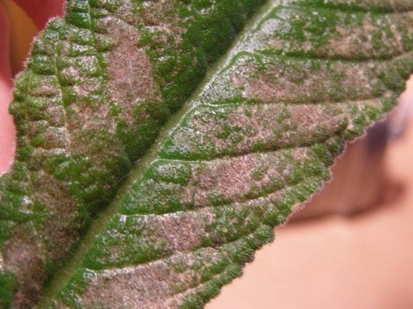 Домашните екземпляри често са засегнати от различни гъбични инфекции. Списъкът включва ръжда, гниене и брашнеста мана. Патологията се развива поради неправилен надзор: постоянен застой на течности или нарушения на температурата. За да се избегне активно размножаване на болести, е необходимо да се извършват редовни инспекции на растението и своевременно да се пръскат засегнатите храсти с фунгицидни разтвори. Всички увредени участъци се отстраняват преди напояване.