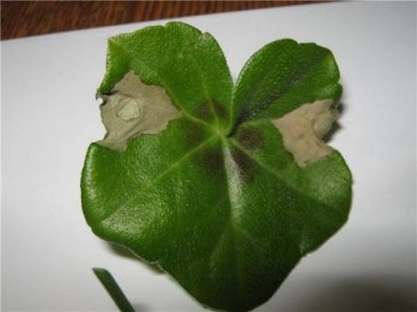 - Листата придобиват мръсен оттенък, стават лепкави и се покриват с бяло покритие, губейки целия си блясък.