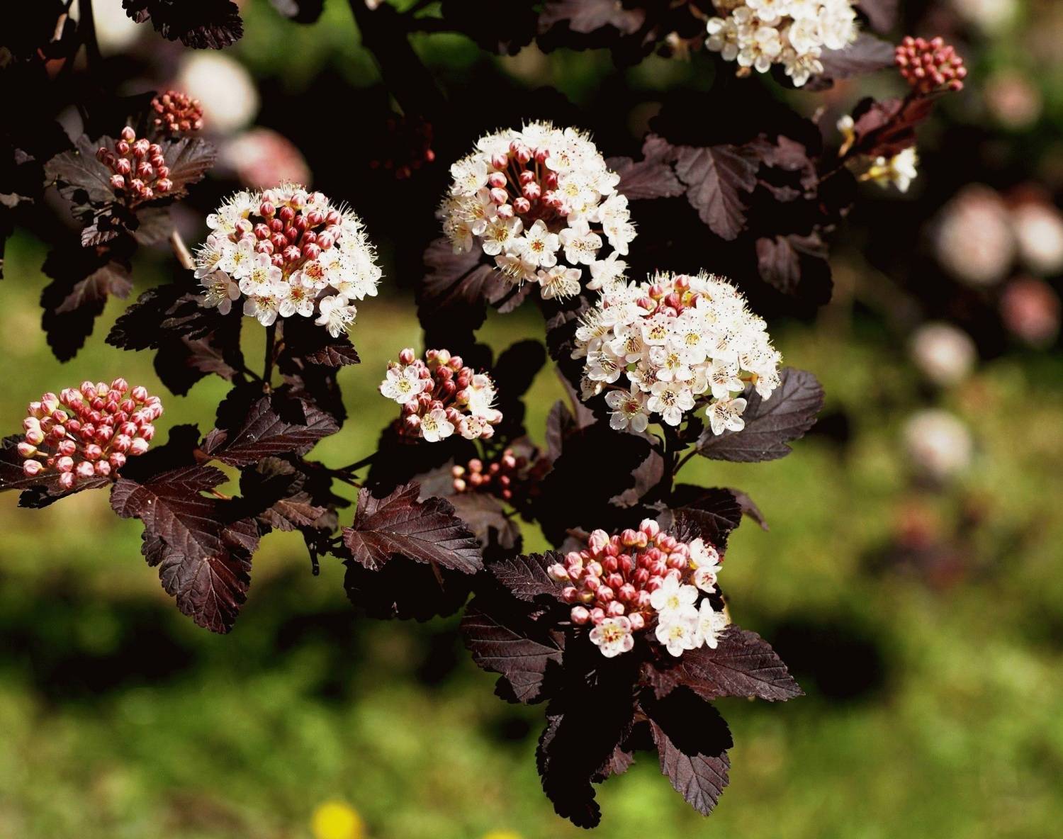 Храст от семейство Розови е известен със способността си да отглежда издънки с дължина до 40 см на сезон. Без формираща резитба храстите се простират до 3 м височина. Ярката зеленина с богат лилаво-бургундски цвят в комбинация с буйни щитове от малки бели цветя изглежда много декоративно.