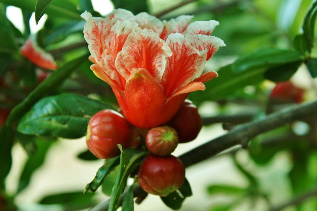 - Нар - ценен заради вкусните и здравословни плодове, цветята му са украса на градината. Сред популярните сортове са високи и джуджета, плодови и декоративни. Цветът на нар може да бъде розов, алено или лилав на цвят. До 97% от пъпките, образувани през сезона, са стерилни и само 3% ще дадат плод. В този случай периодът на цъфтеж продължава до 6 месеца. Температурният минимум за зимуване е до -17 ° С.