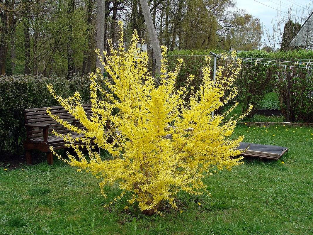 Кратко дърво или малък храст форзиция принадлежи към семейство Маслинови.През пролетта, преди листата да се разтворят, клоните са покрити с многобройни ярко жълти четирилистни камбановидни цветя.