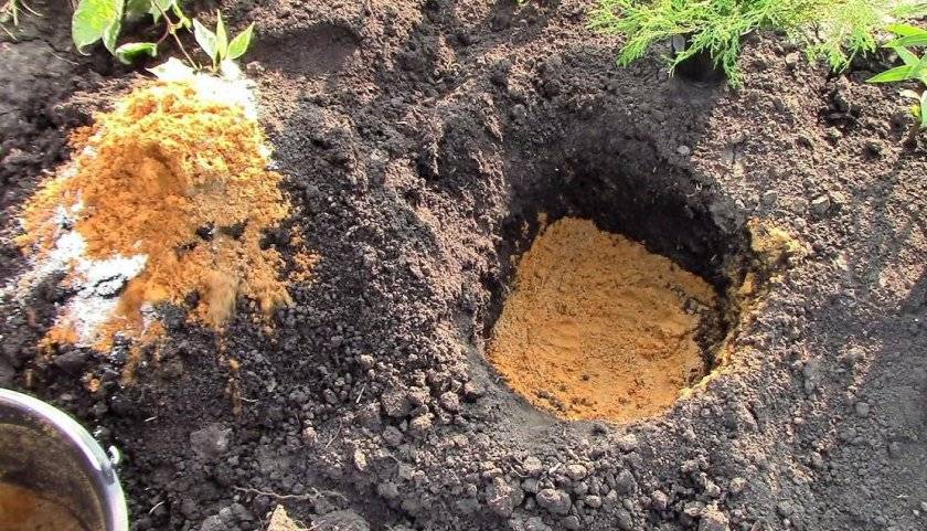 - В центъра на дупката се създава могила от хранителна почва, върху която корено се разпределят корените.