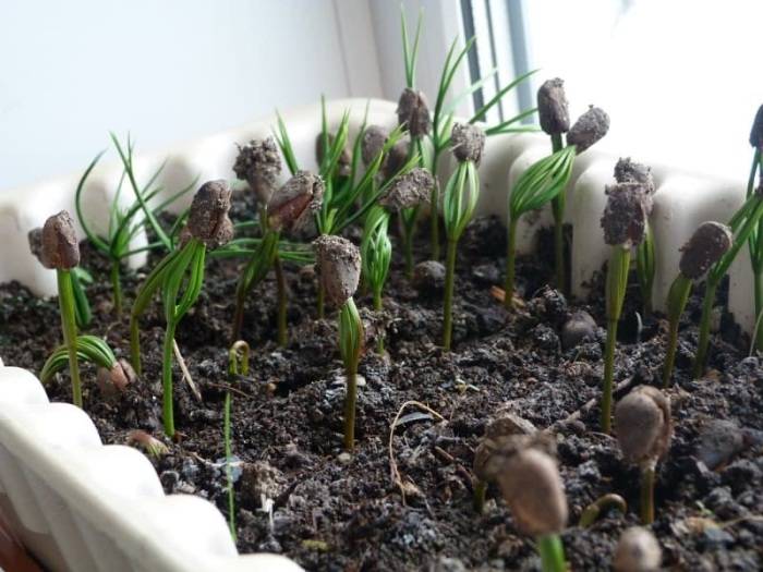 Кедровите кълнове не трябва да са на пряка слънчева светлина; полусянката е по-добра за тях.