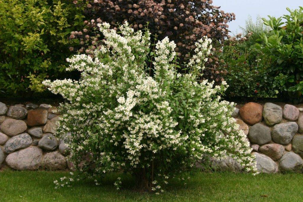 Изправените издънки на храста могат да достигнат височина от 300 см. Широката корона се отличава с повишената си плътност. Клоните на сорта Virginal са буквално осеяни с големи листни остриета. През пролетните и летните месеци листата са боядисани в зелена палитра. С пристигането на есента листните плочи пожълтяват и започват да падат. Двуцветните бели цветя достигат 5 см в диаметър. Този сорт е непретенциозен. Особено изтънченост жълтолистното растение придобива през есенния период. През лятото можете да засадите храсти в градината.