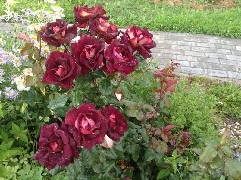 Subject to agrotechnical rules, the rose blooms for a long time and is very abundant. During flowering, large double inflorescences of a deep red color are formed. In the end, an increasingly dark color predominates in the flowers.