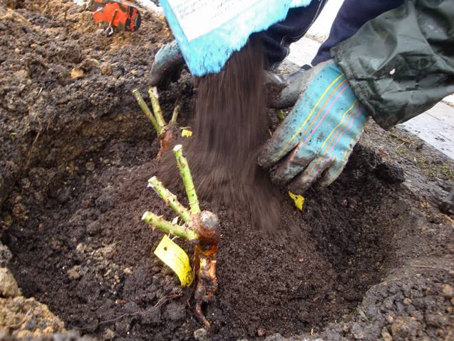 Before direct planting in open ground, it is necessary to prepare the soil in advance. If a spring planting is planned, then the substrate is prepared in the fall. When planting in the fall, you need to prepare the soil mixture about a month before the expected day. Drainage, organic fertilizers, ash, superphosphate are introduced into the soil. The plant should be pruned, leaving small shoots of 15 cm, the pruned roots should be treated with crushed charcoal.