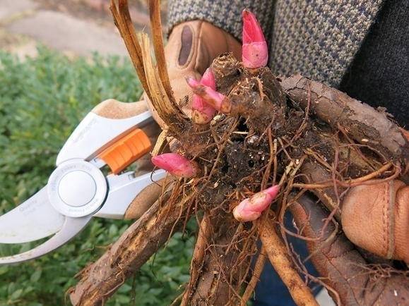 El final del período de floración es un buen momento para trasplantar peonías con fines de propagación. Como regla general, utilizan el método de dividir el arbusto y plantar partes utilizando tecnología convencional.