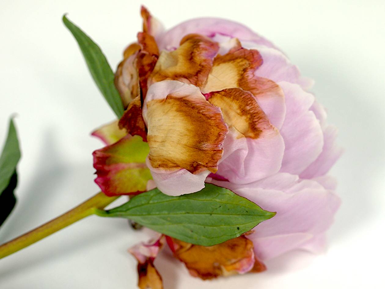 Las enfermedades más comunes de las peonías son la podredumbre gris, el mildiú polvoroso y la cladosporiosis. Las plantas suelen ser atacadas por pulgones y hormigas.