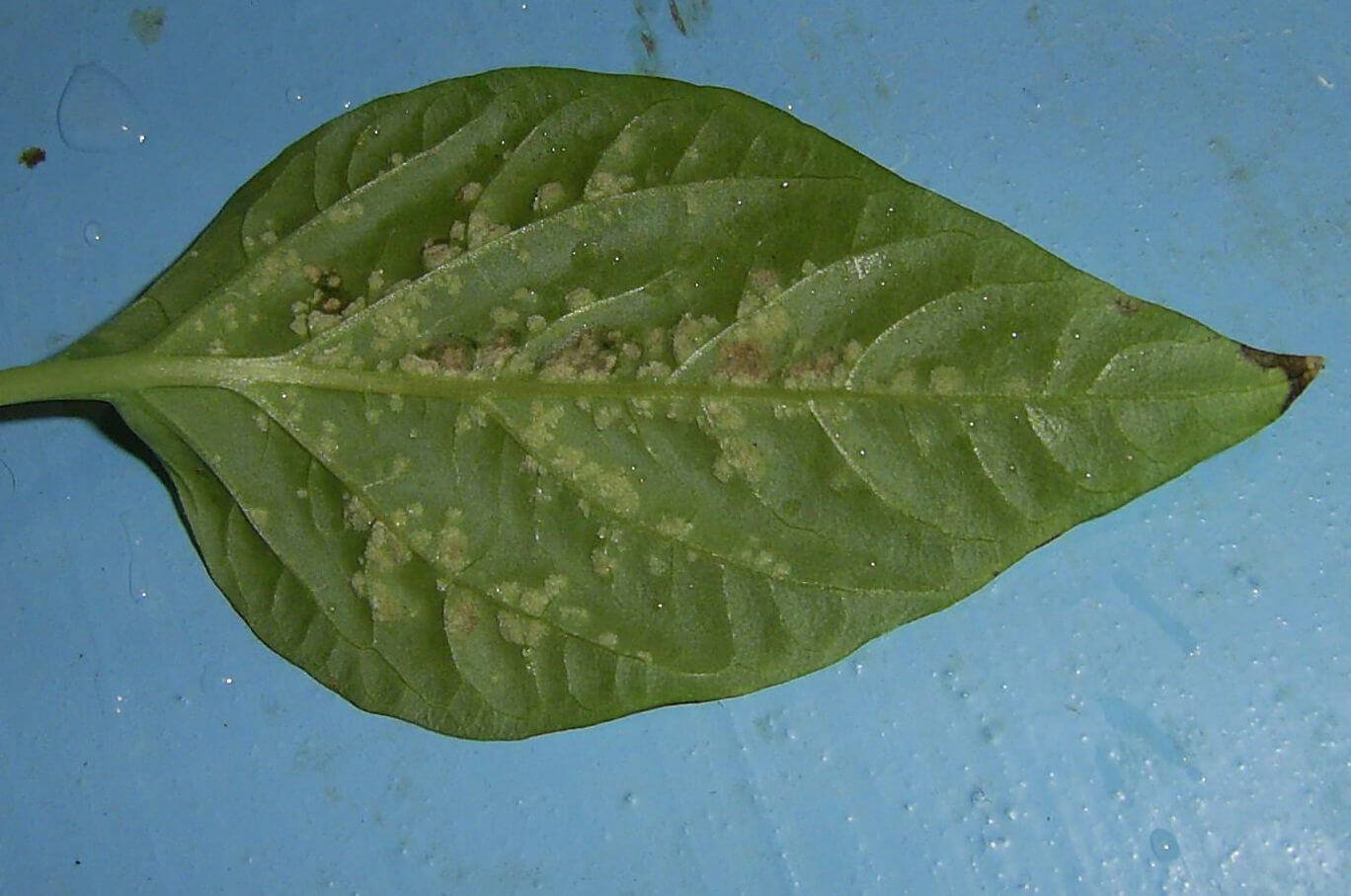 - Mancha de calcio. Ocurre con bastante frecuencia y se acompaña de la aparición de manchas en forma de anillos en el follaje. Después de un tiempo, las hojas se deforman y rizan. Con una fuerte derrota, las inflorescencias sufren. Se vuelven pequeños o completamente ausentes. No será posible deshacerse de la patología.
