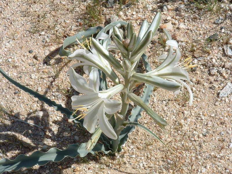 Las flores florecen solo después de lluvias extremadamente raras en su hábitat natural. Cada flor en un pedúnculo alto tiene 6 pétalos blancos con un tinte plateado o verdoso. La corola se abre por la noche, y esto es inmediatamente audible por el fuerte aroma agradable.