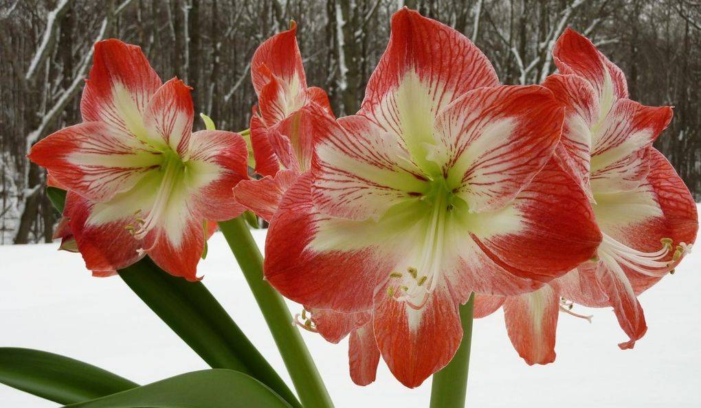 A veces, los bulbos dan 3 tallos, al final de cada uno de los cuales se pueden ubicar 4-12 brotes. El diámetro de una flor de 6 pétalos doblados hacia afuera suele ser de unos 10 cm, pero también hay variedades más grandes. Todo tipo de colores: blanco, rojo, morado, rosa, etc., pero no hay naranja. La floración ocurre solo una vez al año.