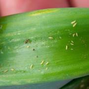 Трипсът може да се появи и върху растението. Те приличат на дълги тънки кафяви бръмбари. За унищожаване на насекоми трябва да се използват инсектициди.