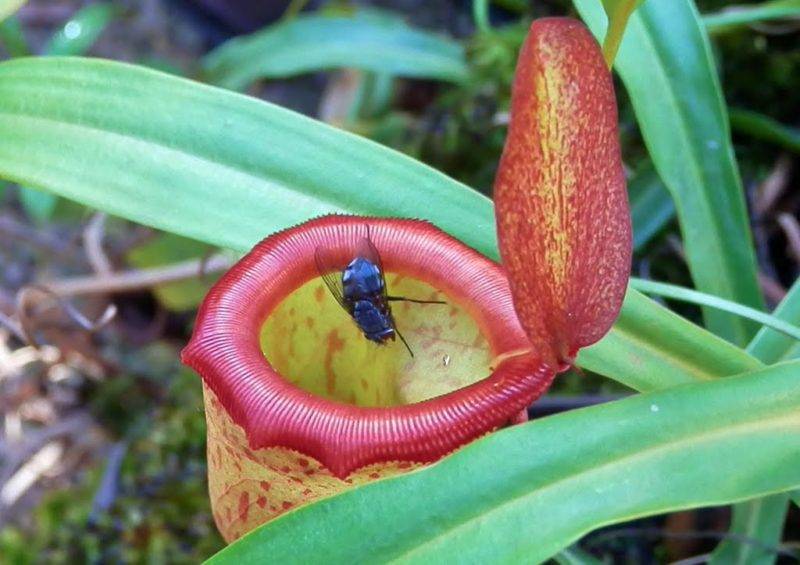 Nepentes Raja е най-големият представител на вида. В дивата природа растението е способно да смила дори гущери.