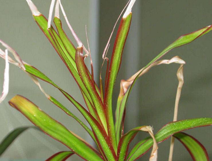 - luce diretta. È importante scegliere il posto giusto in casa dove si troverà il vaso della dracaena. Non tollera la luce solare diretta: inizia ad asciugarsi, le foglie ingialliscono. Succede persino che lo stelo, seccandosi, possa piegarsi a metà. La pianta perde fogliame e muore;