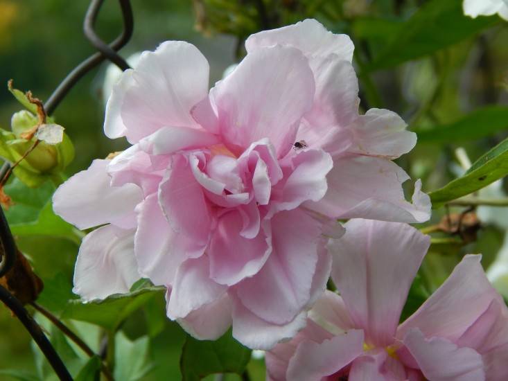 La calistegia giapponese (Calystegia japonica) è una vite con tralci lunghi fino a 2,5 m. I suoi fiori doppi fino a 9 cm di diametro brillano dal rosa chiaro al bianco. Viene anche chiamata edera calistegia, in quanto le foglie hanno 3 lobi e sono di colore verde.