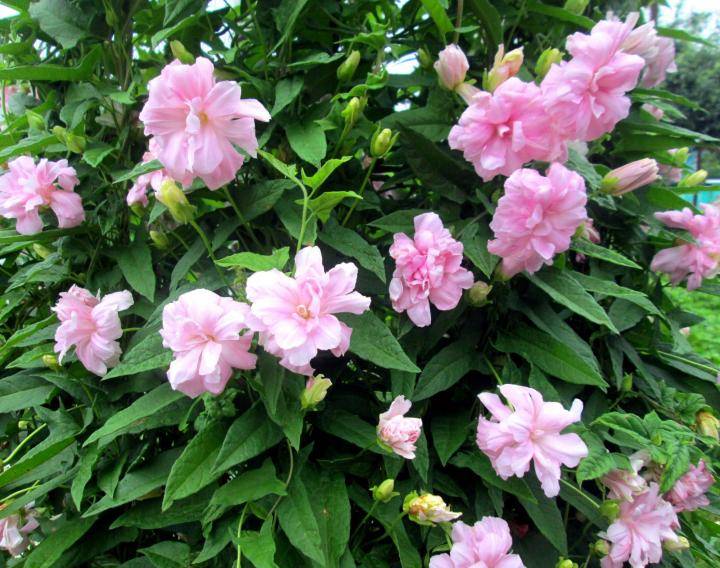 Il genotipo della varietà è il più vicino al soffice, ha un colore rosa dei fiori fino a 9 cm di diametro. Foglie di forma classica con pubescenza vellutata. Fusti fino a 3 m Ivy calistegia Flore Plena fiorisce da luglio al gelo ed è altamente resistente al gelo.