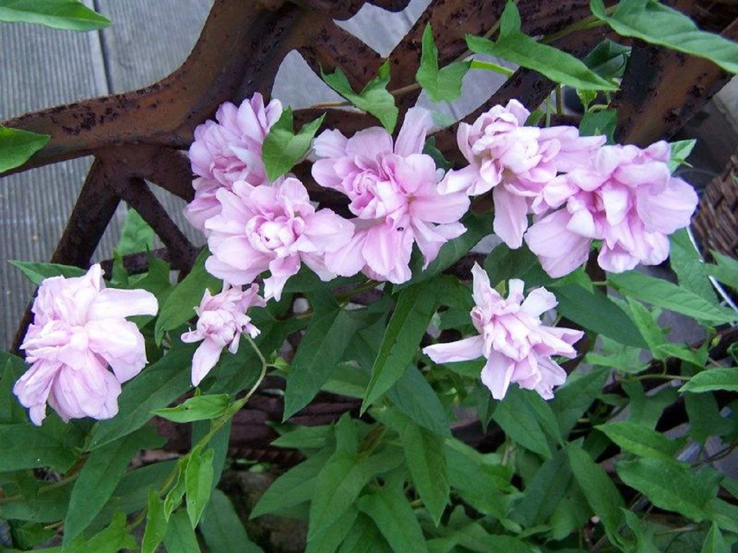 Una varietà molto decorativa con germogli lunghi fino a 3,5 m. Il fogliame cresce molto densamente ei fiori sono di un doppio rosa chiaro fino a 9 cm di diametro.