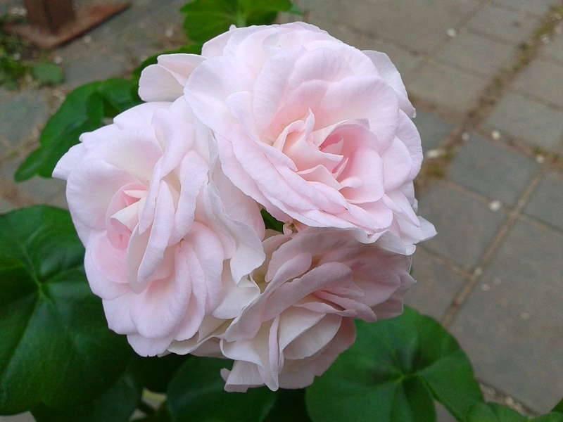 Il Pelargonium PAC Vita Madeleine (PAC Viva Madeleine) è un cespuglio abbastanza compatto con una lunga fioritura. In ombra parziale, i petali sono bianchi come la neve e sotto il sole aperto diventano rosa. Le foglie sono piccole, di un verde denso.