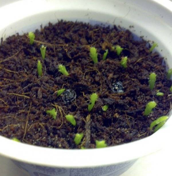 След около 20 дни първите издънки започват да поникват и през следващото десетилетие семената трябва да покълнат напълно. На разсад трябва да се осигури своевременно поливане, хранене и осветление в продължение на шест месеца. След това разсадът на Decembrist може да бъде засаден в отделни контейнери.