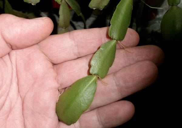Необходимо е да се отделят сегментите от майчиното растение изключително внимателно и внимателно. Не използвайте ножици или ножове. Евакуацията трябва да се извърши с двете ръце от двете страни на кръстовището на листовете и внимателно да се развие, опитвайки се да не нарани декабриста.