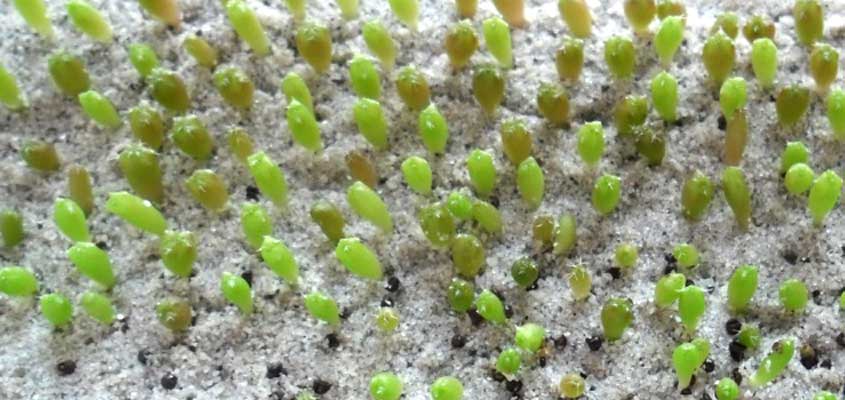 След около месец семената ще поникнат. Разсадът ще трябва да бъде трансплантиран в отделни малки контейнери. Отначало стъблото на младите растения ще има цилиндрична форма, след това, израствайки, ще стане плоско.