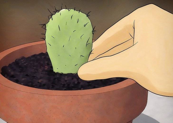 След това в саксията се изсипва насипен субстрат и бодливата круша се засажда в нея по метода на претоварване (с бучка пръст).