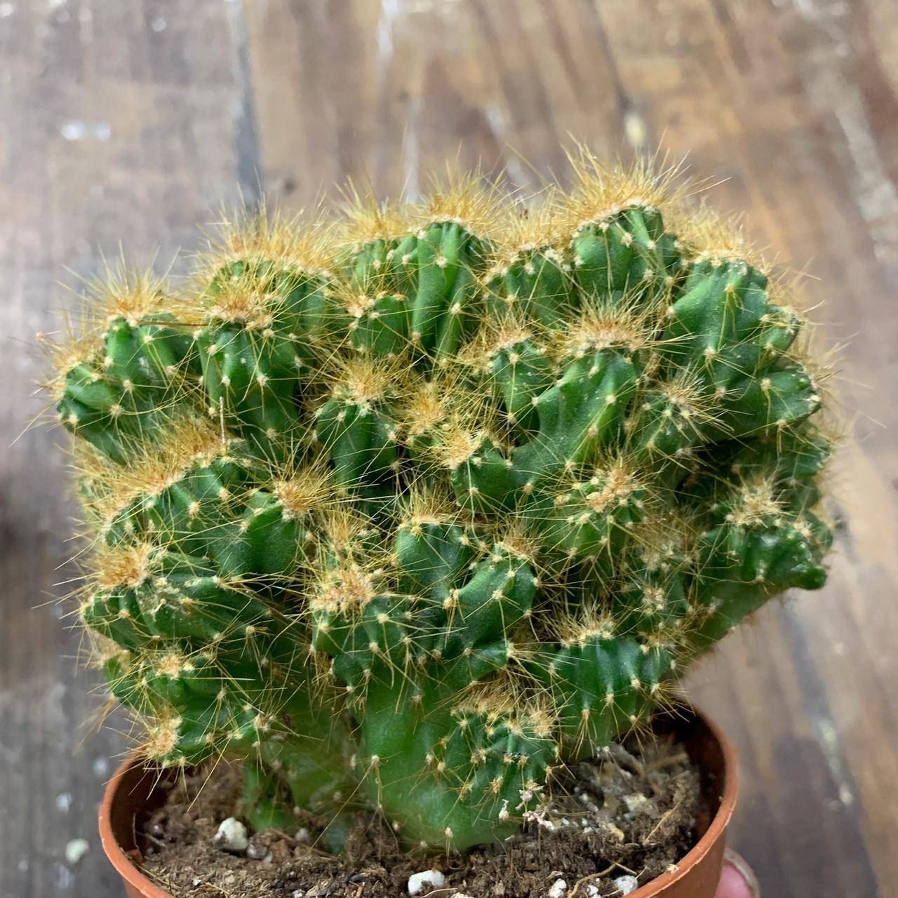 - Кактусът цефалоцереус има цилиндрично стъбло, височината му варира от 10-20 см. Основната характерна особеност е наличието на бели косми по стъблото. Благодарение на тях кактусът изглежда пухкав. Растението не цъфти у дома.