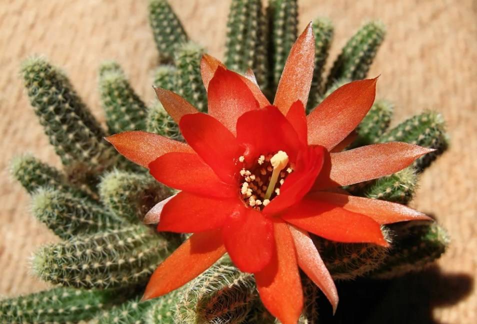 Chamecereus принадлежи към семейство cactaceae. В дивата природа те растат в Аржентина. Това е нискорастящо растение с малък размер, което е отлично за декориране на стаи. Образува стъбла с височина около 15 см в светлозелен цвят. Повърхността им е обилно осеяна със светли игли. Растението е склонно към разклоняване, за първи път започва да цъфти за 3-4 вегетационни сезона.