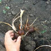 - В леглата или цветните лехи се приготвят просторни дупки. Те трябва удобно да пасват луковиците, така че корените на растението да не се наранят, и остава място за пълното им покриване със земя.