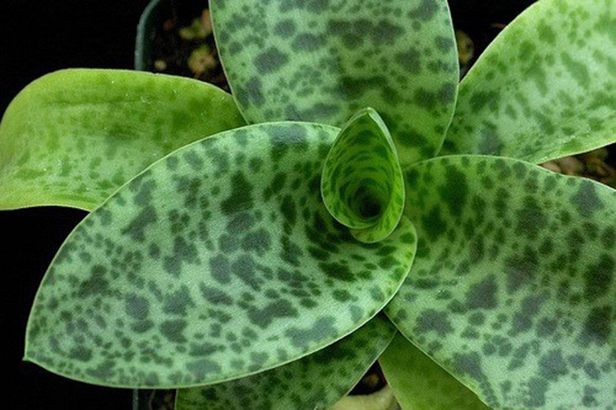 Листата са дебели и плътни, лъскави, могат да бъдат едноцветни или покрити с шарки с овална форма със заострени върхове. Когато слънчевите лъчи ги ударят, те хвърлят сребро.