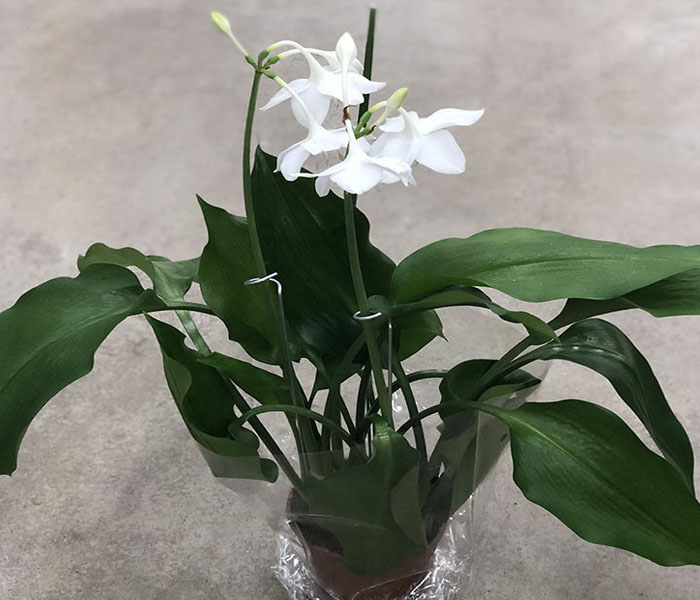 Eucharis принадлежи към семейство Амарилис. Това е луковично растение с големи, дългостъблени лъскави листа. При младите листа краищата се навиват на тръбички по средната жилка.