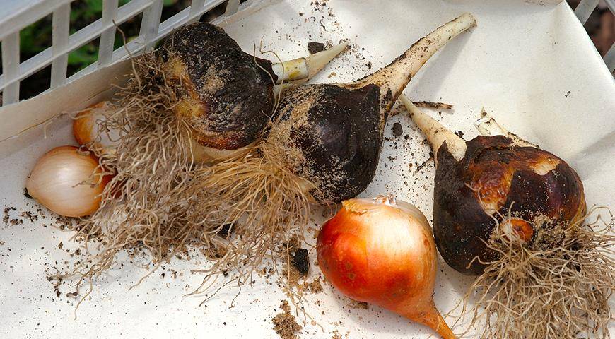 Ако засаждането на луковиците не е планирано през есента, тогава те трябва да бъдат подготвени за зимуване. За да се увеличи устойчивостта на различни заболявания, много производители обработват луковиците, които първо се почистват от мръсотия и излишна обвивка, с физиологичен разтвор (1 супена лъжица сол се взема за 1 литър вода).