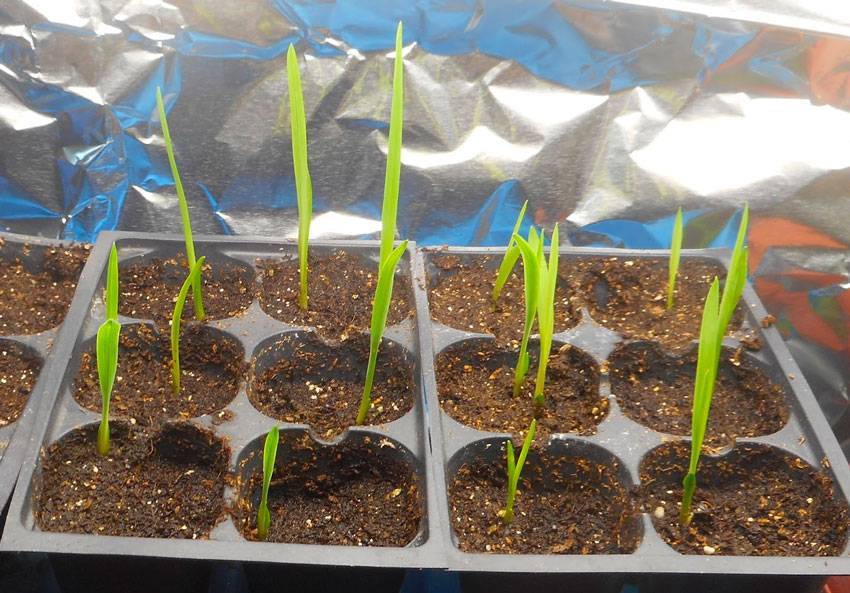 Контейнерите с култури се покриват с фолио и се оставят на топло (22-24 ° C) светло място. Разсад се очаква за 2-3 седмици. Филмът се отваря веднъж на ден за проветряване в продължение на 1 час. Поливането се извършва от спрей бутилка, опитвайки се да получи постоянна влага в почвата.