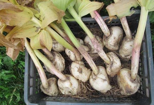 След цъфтежа луковицата се храни дълго време през земната част на храста. Следователно е необходимо да го изкопаете само след като листата и цветните стрели изсъхнат.