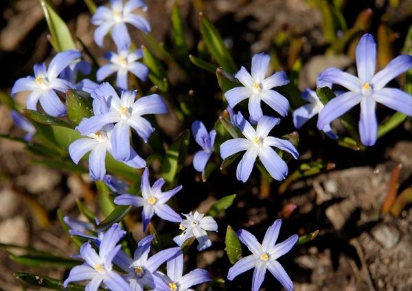 При първото топене на снега луковичните иглики започват да нарастват. Има много разновидности от тях. Те са най-ранните растения, които радват с красив цъфтеж. Например, синьо скраб цвете. Първите пъпки се образуват в началото на пролетта (през март). За да украсите сайта, струва си да направите няколко насаждения в цветното легло. Има и други видове и разновидности.