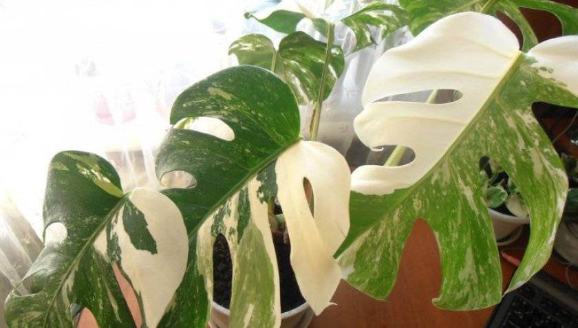 Daun hijau pucat dengan bintik kuning menunjukkan cahaya matahari langsung. Monstera berasal dari kawasan tropika, jadi cahaya yang luar biasa banyak. Apabila tanda-tanda pertama muncul, disarankan untuk menjauhkan bunga dari tingkap dan membayangi. Lebih baik memilih bahagian utara dan barat rumah.