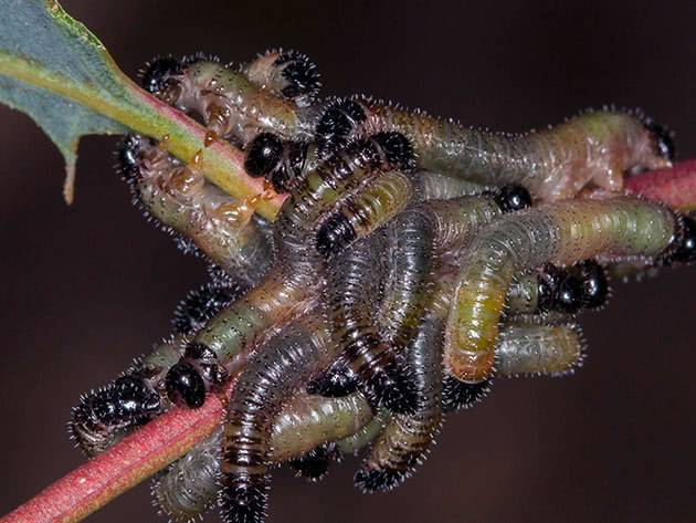 | Ia menetap di tunas, daun, tunas. | Larva ulat memakan tunas segar, hanya berbunga, kemudian daun. | Tinggal di bahagian bawah daun, pucuk. | Kelihatan pada daun. | Mereka memakan sebahagian tanaman. |