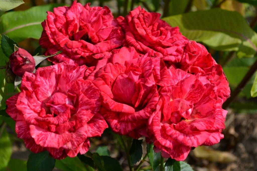 Gabungan mawar Red Intuition dengan mawar Merah Antarabangsa cukup menarik. Komposisi dengan pokok renek konifer - juniper dan thujas dari pelbagai jenis kelihatan menarik.