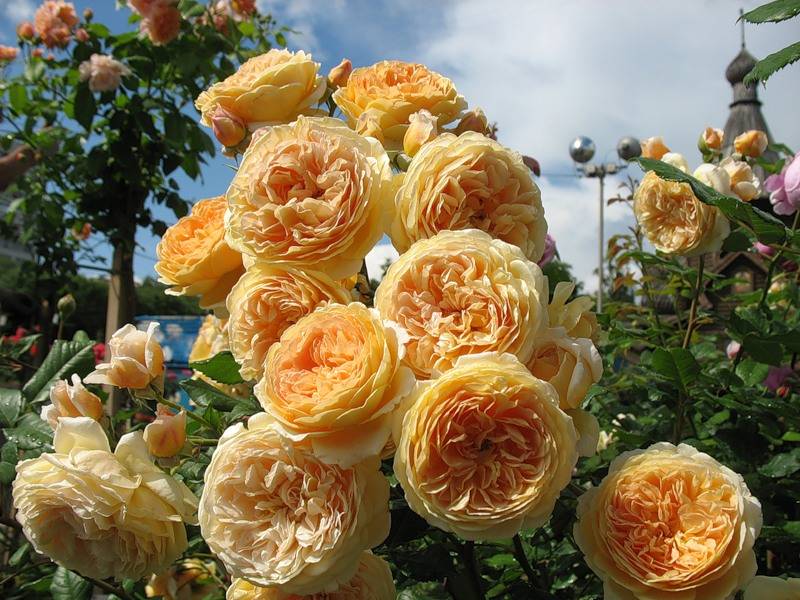 Varieti ini dibezakan oleh petunjuk ketahanan dan ketahanan fros yang sangat baik. Semasa berbunga, bunga salmon emas besar dengan aroma epal kaya terbentuk. Ketinggiannya mencapai 1-1.2 meter. Mekar dua kali pada musim panas. Sesuai untuk tumbuh di kawasan iklim Siberia yang keras. Anda boleh mengembangkannya sebagai budaya pendakian.